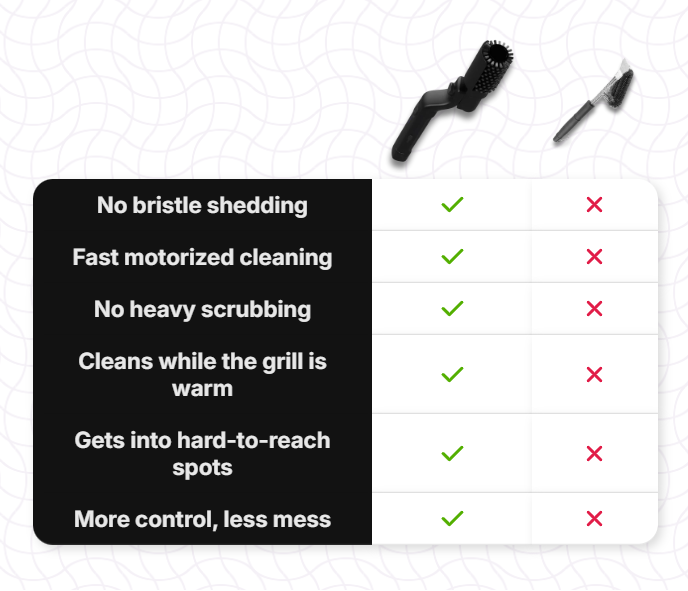 Unlike traditional grill brushes that may shed bristles over time, this electric grill cleaner is designed to prevent bristle shedding on grates. The result is safer cleaning, improved reliability, and confidence that your grill is truly ready for food preparation.