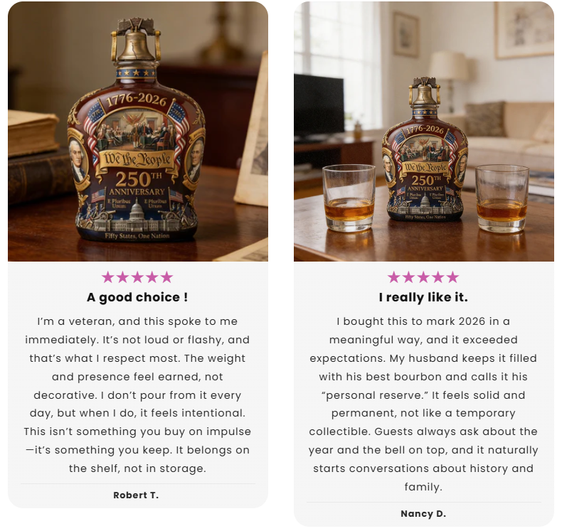 "I bought this because 2026 felt like a year I didn't want to let pass quietly. The weight surprised me - it feels serious, like something meant to stay. Every detail feels thoughtful without being overdone. It's now on my desk, and my grandson asked me what the year meant. That alone made it worth it. This isn't just a decanter - it's a conversation piece with meaning."