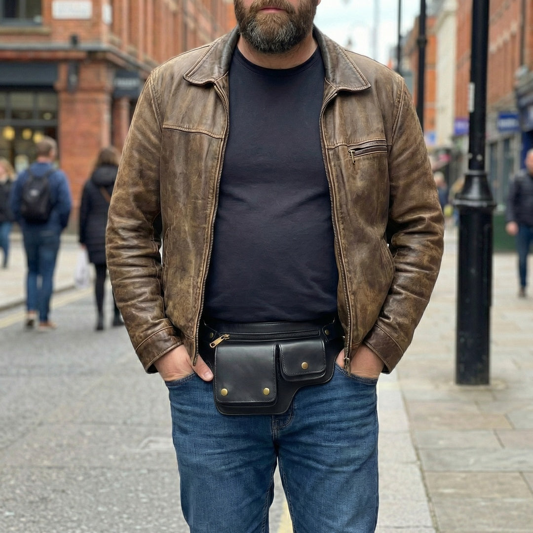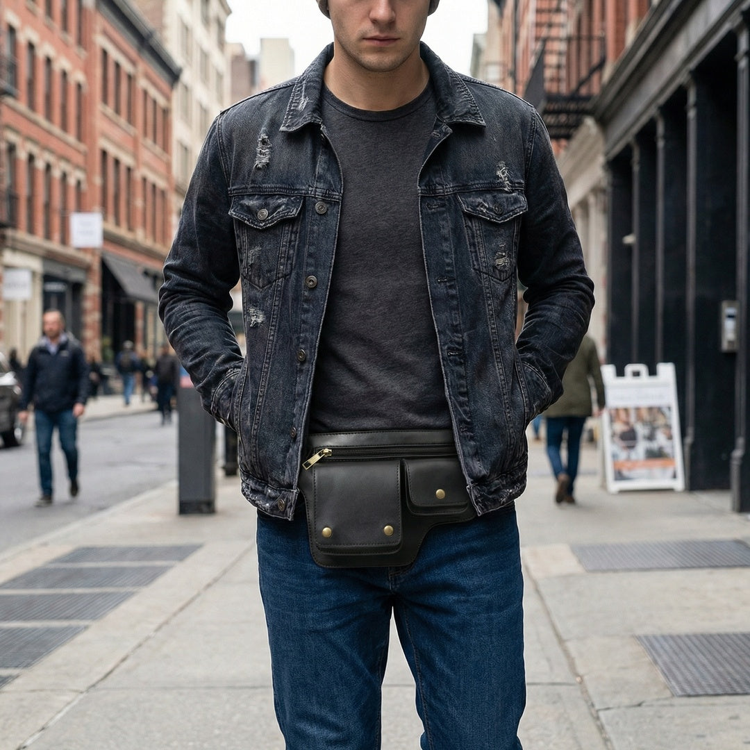 Voyager isn’t a “man purse.” It’s a low-profile belt bag made for real life. It replaces stuffed pockets, keeps your essentials organized at your waist, and sits flat so you can walk around hands-free without looking bulky or touristy.