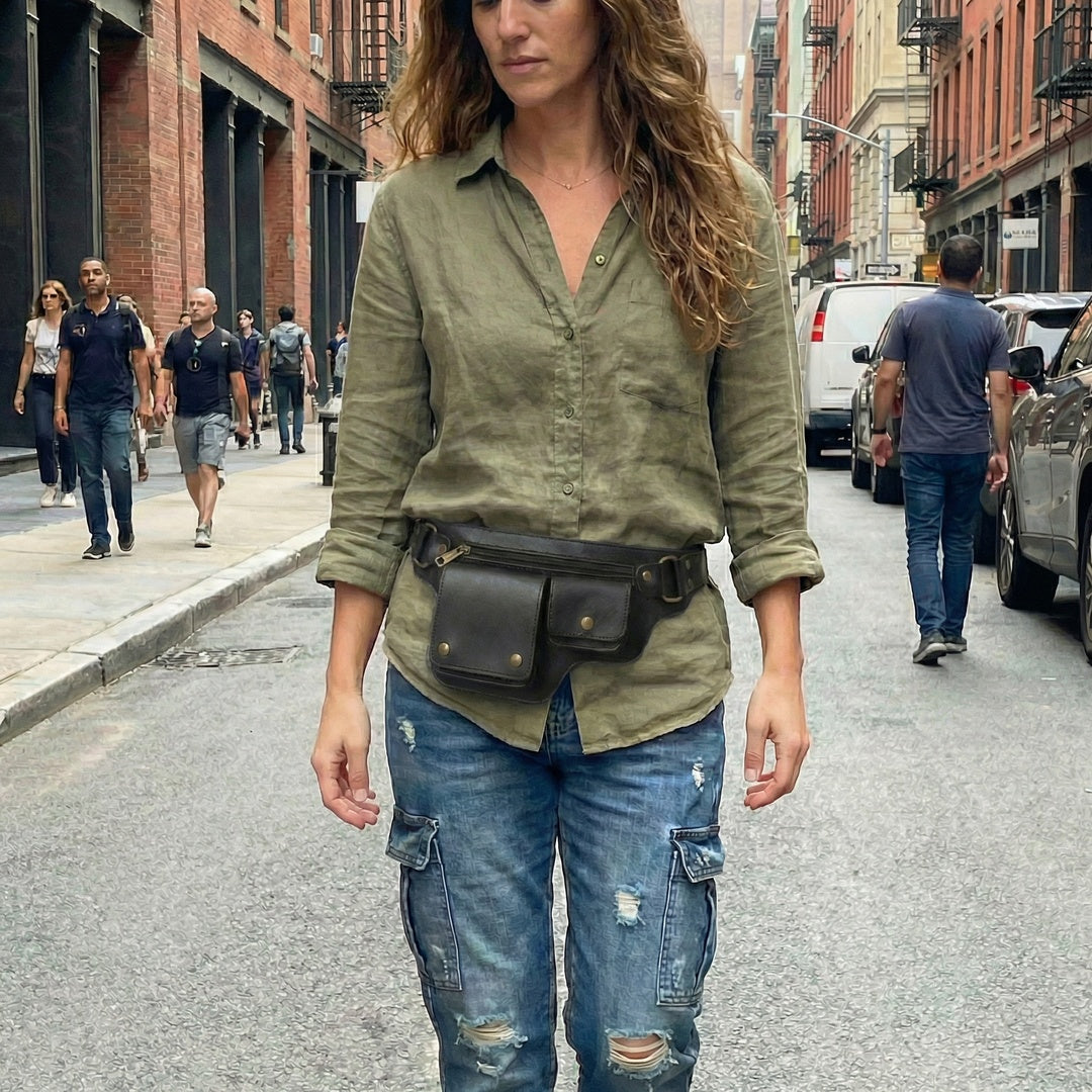 At your waist: sits flat and looks clean with jeans and a simple shirt no bulky “pouch” vibe.